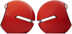 Ikoniczna, kompaktowa forma z błyszczącym czerwonym wykończeniem prezentuje się nowocześnie i elegancko. Głośniki idealne na biurko i do mniejszych pomieszczeń, gdzie docenisz moc 74 W i świetne wykonanie.