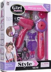 Zostań małą fryzjerką z tym zestawem do włosów dla dziewczynek! Zestaw zawiera wszystko, czego potrzebujesz do tworzenia oryginalnych fryzur na przyjęcia – od zaplatania nitek po suszarkę i wałki.