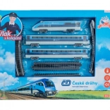 W zestawie znajduje się lokomotywa, dwa wagony, 12 łuków i 8 prostych odcinków torów o łącznej długości 4,8 m. Elementy torowiska łatwo zatrzaskują się ze sobą i można je dowolnie łączyć. Zestaw jest kompatybilny z popularnym pociągiem REGIOJET i można go rozbudować o kolejne tory oraz rozjazdy (sprzedawane osobno).