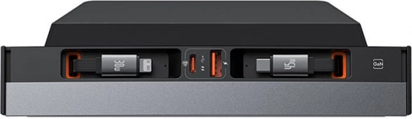 - Ładowanie 4 urządzeń jednocześnie: 2× wysuwany przewód USB‑C + USB‑C + USB‑A.