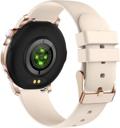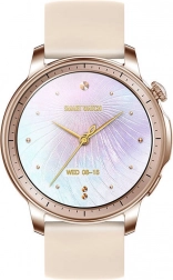 Smartwatch zachwyca eleganckim, złotym wykończeniem i lekkością. Pasuje do każdego stroju.