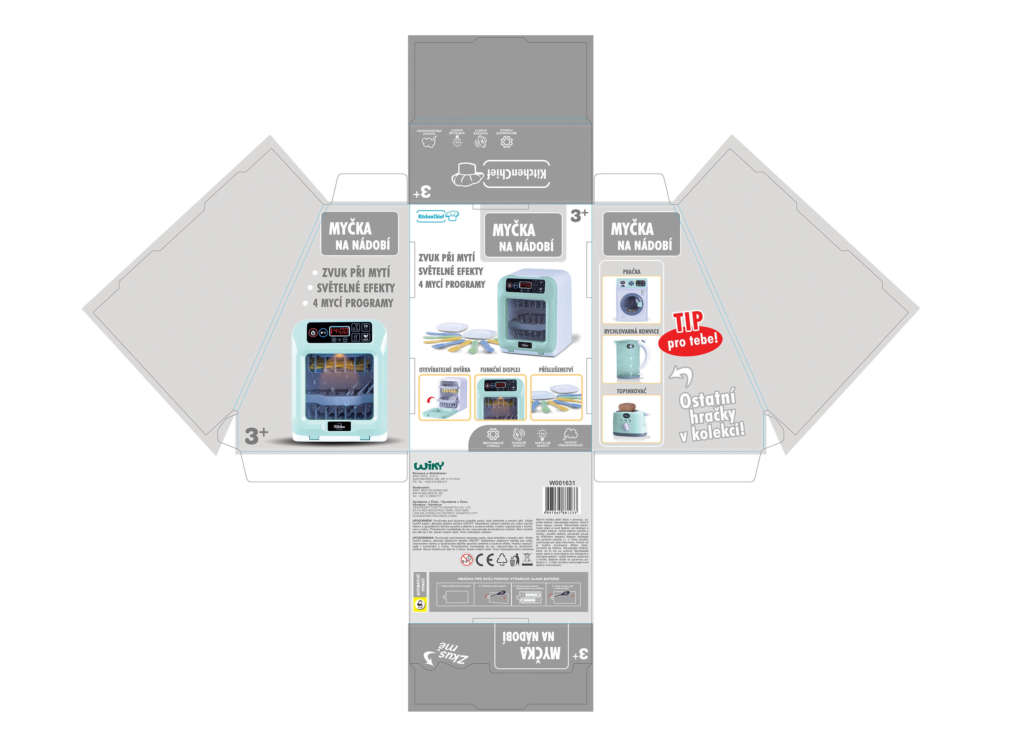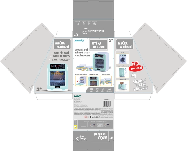 Wybierz jeden z 4 programów mycia albo ustaw własny czas według potrzeb. Zmywarka jest gotowa do użycia zaraz po rozpakowaniu – 2× bateria AAA w zestawie. Doskonały prezent, który bawi i uczy porządku w kuchni.