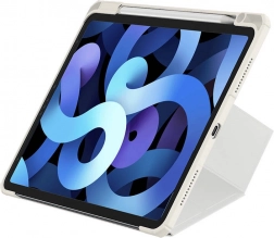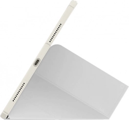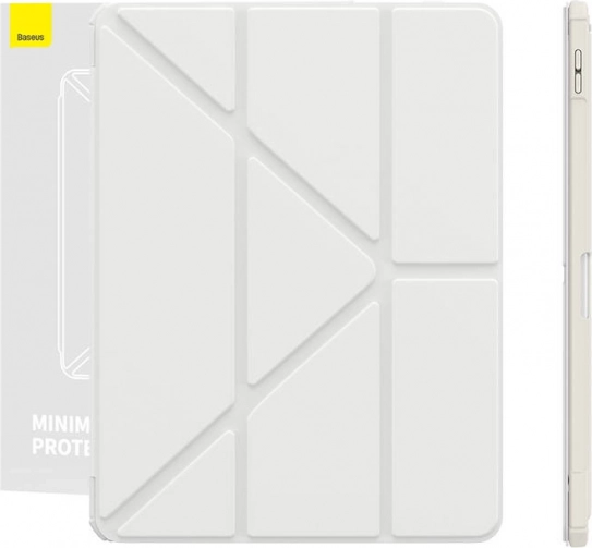 Zintegrowana składana przednia część tworzy stabilny stojak z wieloma kątami do pisania, rysowania i oglądania wideo. Magnetyczna klapka wspiera funkcję auto wake/sleep, dzięki czemu oszczędza baterię – otwórz, aby wybudzić, zamknij, aby uśpić. Praktyczny uchwyt mieści Apple Pencil (1. i 2. generacji) oraz rysiki BASEUS, a otwory wentylacyjne ułatwiają odprowadzanie ciepła.
