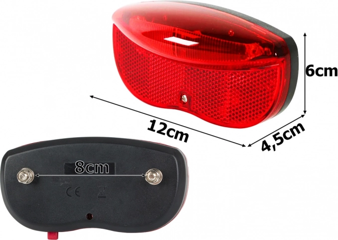 Montaż jest szybki i bezproblemowy – światło mocuje się dwoma śrubami do większości standardowych bagażników (rozstaw 8 cm). Wytrzymała konstrukcja radzi sobie z deszczem, chłodem i wstrząsami, a zasilanie zapewniają powszechnie dostępne 2× baterie AA, które są częścią zestawu. Produkt posiada certyfikację CE.