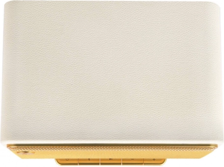 Elegancka złota maskownica, kompaktowa obudowa i solidne wykonanie z MDF. Przedni panel sterowania zapewnia szybki dostęp do funkcji, a gumowane nóżki gwarantują stabilność na meblach.