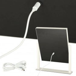 Minimalistyczny design w białym kolorze oraz trwała metalowa rama ze stabilną podstawą z powłoką antypoślizgową gwarantują wygodne użytkowanie także podczas regulacji kąta. Lustro idealnie sprawdzi się do codziennego makijażu, rytuałów pielęgnacyjnych oraz precyzyjnych poprawek brwi czy cery.