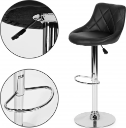Ten nowoczesny hoker z chromowaną ramą i czarnym siedziskiem z ekoskóry to doskonały wybór do każdego wnętrza. Pasuje zarówno do nowoczesnych, jak i klasycznych przestrzeni.