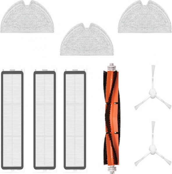Zawartość opakowania obejmuje wysokiej jakości komponenty do pełnej pielęgnacji: od głównej szczotki do efektywnego zbierania zanieczyszczeń, poprzez szczotki boczne do sprzątania wzdłuż ścian i w narożnikach, aż po filtry HEPA dla czystszego powietrza i ściereczki mopujące do dokładnego mycia twardych podłóg.