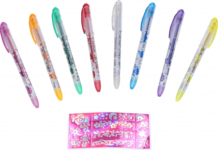 Stwórz fantastyczne wzory na swoich lalkach z tymi żelowymi długopisami do tatuaży. Opakowanie zawiera 8 kolorowych długopisów i szablony dla łatwej aplikacji.