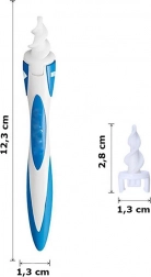 Praktyczny i bezpieczny czyścik do uszu z 16 wymiennymi silikonowymi końcówkami. Miękka, elastyczna końcówka umożliwia delikatne i skuteczne czyszczenie oraz osuszanie uszu bez bólu. Idealny w podróży dla całej rodziny.