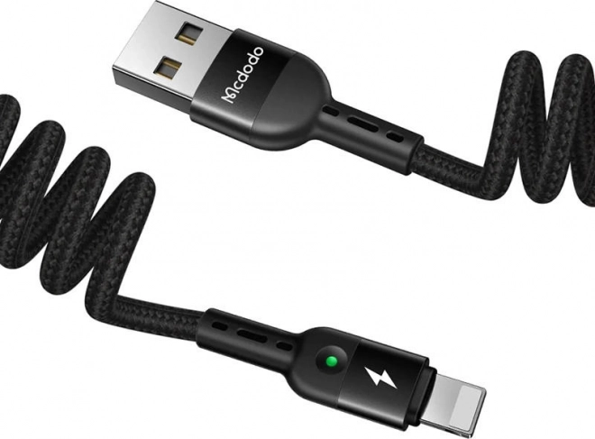 Uniwersalny sprężynowy kabel do urządzeń Apple. Ten kabel Mcdodo oferuje szybkie ładowanie i łatwe użytkowanie dzięki sprężynowej konstrukcji, która zapobiega plątaniu.