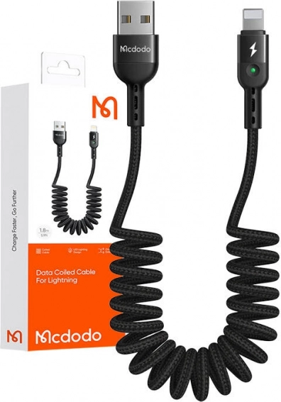 Ciesz się bezproblemowym ładowaniem z kablem sprężynowym Mcdodo, który oferuje szybkie ładowanie dzięki prądowi do 2A. Wbudowane oświetlenie LED ułatwia znalezienie kabla w ciemności.