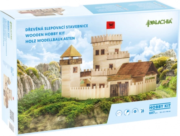 Zbuduj własną średniowieczną opowieść z drewnianą konstrukcją WALACHIA – Zamek w skali 1:32. Zestaw zawiera 607 elementów z wysokiej jakości drewna z papierowymi dodatkami (okna, drzwi, dachy) oraz szczegółową instrukcję. Gotowy model ma wymiary około 53 × 41 × 46 cm i oferuje poziom trudności 4/5 dla świetnych wrażeń modelarskich.