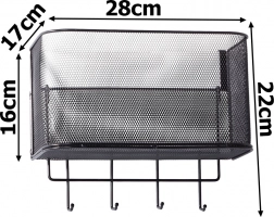 Ten metalowy wiszący koszyk jest nie tylko praktyczny, ale także stylowy. Jest przestronny i pozwala na przechowywanie różnorodnych przedmiotów, od dodatków kuchennych po przybory toaletowe. 4 dodatkowe haczyki można użyć do zawieszania kluczy, ręczników lub torebek.