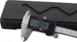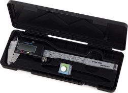 Elektroniczna cyfrowa suwmiarka 150 mm z dokładnością 0,02 mm i dużym wyświetlaczem LCD. Solidna stal nierdzewna, funkcje ZERO i AUTO OFF, pomiary zewnętrzne, wewnętrzne i głębokości. W zestawie etui i baterie.