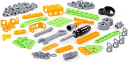 Dodatkowo ucieszy Cię realizm zabawki, ponieważ wiernie odwzorowuje prawdziwe narzędzia, które tata ma w warsztacie. W zestawie znajdziesz śrubokręt ze śrubami i dwiema wymiennymi końcówkami, klucz z nakrętkami oraz korkociąg.