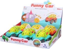Uroczy plastikowy samochodzik–grzechotka dla najmłodszych zachwyca wesołymi kolorami, lekką konstrukcją oraz przyjemnym, grzechoczącym dźwiękiem, który uspokaja maluszka i wspiera jego rozwój sensoryczny.
