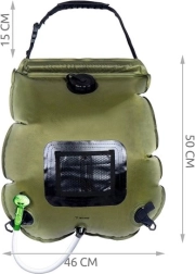Przezroczyste okienko umożliwia obserwację poziomu i czystości wody. 20 litrów wystarczy na kilka komfortowych pryszniców.