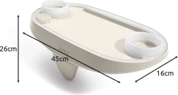 Zaprojektowana z myślą o maksymalnej praktyczności i bezpieczeństwie: 2 uchwyty na napoje utrzymają kubki, szklanki i butelki bez ryzyka przewrócenia, a powierzchnia na tablet lub smartfon pozwoli wygodnie oglądać ulubione treści. Zasilanie zapewniają 2 baterie CR2032 (w zestawie), więc nie są potrzebne kable ani instalacja.