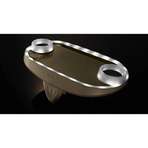 Ciesz się relaksem w jacuzzi jeszcze bardziej dzięki praktycznej półce INTEX z podświetleniem LED. Oferuje uniwersalną kompatybilność ze wszystkimi SPA INTEX, 2 bezpieczne uchwyty na napoje oraz miejsce na tablet lub telefon. Delikatne oświetlenie LED stworzy przyjemną atmosferę do wieczornych kąpieli.