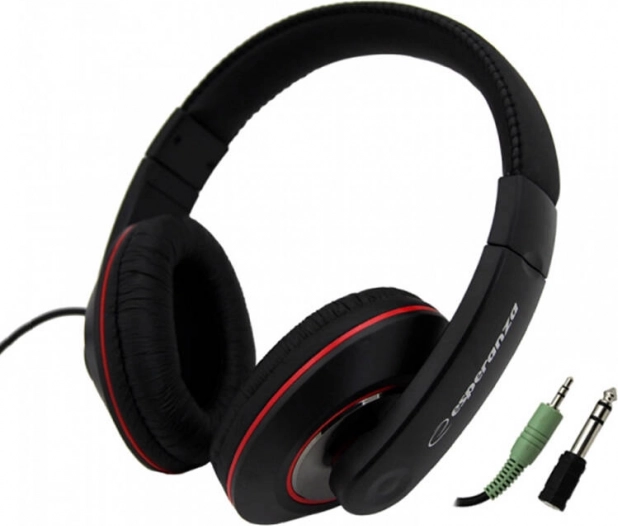Stylowe przewodowe słuchawki Esperanza w czarnym kolorze oferują dźwięk stereofoniczny, wygodne noszenie dzięki wyściełanemu pałąkowi i miękkim nausznikom oraz płynną regulację głośności. Dzięki uniwersalnemu złączu jack 3,5 mm i dołączonemu adapterowi 6,3 mm łatwo podłączysz je do komputera, telefonu, wzmacniacza i innych urządzeń audio.