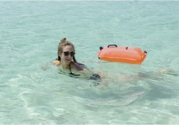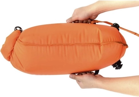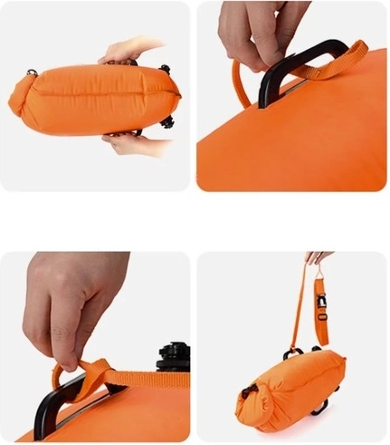 Dzięki prostemu mechanizmowi nadmuchiwania i spuszczania powietrza, boja jest łatwa w użyciu. Regulowany pasek umożliwia wygodne noszenie wokół talii, nie ograniczając ruchu.