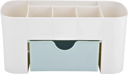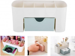 Odkryj magię porządku z tym dwuczęściowym organizerem, który doskonale uporządkuje twoje kosmetyki i biżuterię. Górna część zawiera 6 różnych przegródek, idealnych na szminki, lakiery czy błyszczyki do ust, podczas gdy dolna część jest wyposażona w szufladę do przechowywania biżuterii lub produktów kosmetycznych.