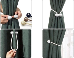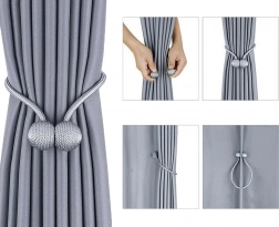 Montaż zajmuje kilka sekund – wystarczy owinąć wokół zasłony i połączyć magnetyczne końcówki. Uniwersalna długość 45 cm i średnica kulek 3 cm sprawdzą się przy większości typów zasłon. W opakowaniu znajdują się 2 szt. do symetrycznego upięcia obu stron okna.