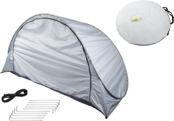 Samorozkładający się namiot plażowy w eleganckim szarym kolorze zapewni przyjemny cień i prywatność podczas upalnych dni. Dzięki sprytnemu mechanizmowi rozkłada się niemal natychmiast, więc więcej czasu poświęcisz na odpoczynek. Materiał z ochroną UV pomaga zmniejszyć wpływ promieniowania słonecznego, a aerodynamiczny kształt lepiej opiera się wiatrowi.