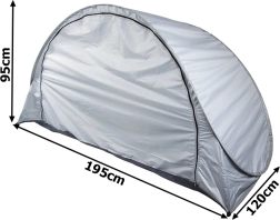 Namiot jest lekki, łatwy do przenoszenia i po złożeniu zajmuje minimum miejsca. Zamykana konstrukcja oraz możliwość kotwienia śledziami zwiększają stabilność i komfort. Wymiary 195 × 120 × 95 cm są idealne dla 1–2 osób, czy to na plaży, w ogrodzie, na kempingu, czy jako kącik zabaw dla dzieci.