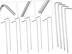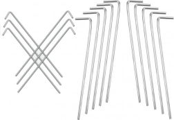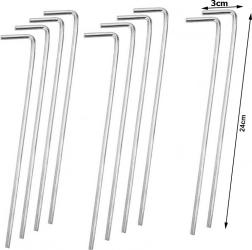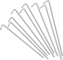 Praktyczny zestaw 10 stalowych śledzi z zakończeniem w kształcie L jest idealny na kemping, do ogrodu i na wędrówki. Dzięki średnicy 4 mm i długości 24 cm śledzie pewnie trzymają w trawie, ziemi i żwirze, zapobiegając luzowaniu linek czy taśm. Prosty kształt umożliwia szybkie wbijanie i wyciąganie.