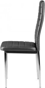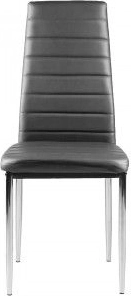 Odśwież swoje wnętrze ponadczasowym zestawem 4 krzeseł, łączących nowoczesny design i praktyczne materiały. Szara ekoskóra łatwo się czyści i prezentuje się elegancko, a chromowane stalowe nogi dodają lekkości i trwałości. Wysokie, profilowane oparcie oraz miękka pianka PU zapewniają wygodę przy rodzinnym stole i podczas dłuższych spotkań.