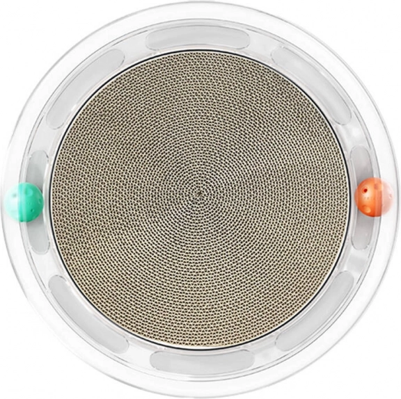 Drapak PETKIT to sprytne mini boisko dla kotów, które łączy naturalną potrzebę drapania z interaktywną zabawą. Tor biegnący po obwodzie skrywa dwie kolorowe kule – pomarańczowa z dzwoneczkiem pobudza instynkt łowiecki, natomiast zielona z zapachem kocimiętki zachęca do dalszej aktywności. Środkowa część z wysokiej jakości falistego kartonu służy jako wygodne miejsce do drapania i odpoczynku.