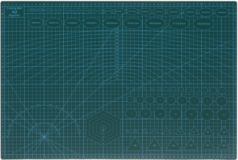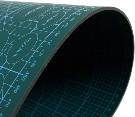 Mata posiada nadruki po obu stronach, które zawierają różne miarki i linie pomocnicze, maksymalizując możliwości przy pracy kreatywnej.