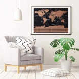Dekoracyjna mapa, która pozwala podróżnikom zaznaczać odwiedzone kraje poprzez usuwanie wierzchniej warstwy. Pod nią ukazują się kolorowe flagi i szczegóły poszczególnych państw.