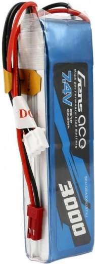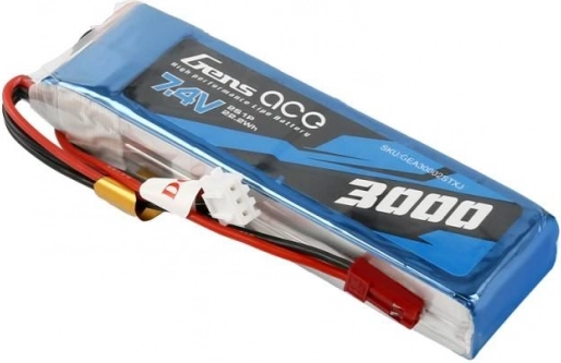 Akumulator LiPo Gens Ace o pojemności 3000 mAh i napięciu 7,4 V jest idealny do modeli RC dzięki swojej wysokiej odporności i znakomitej wydajności.