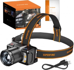 Mocna latarka czołowa Superfire oferuje jasność 700 lm, zasięg do 210 m oraz aż 8 trybów świecenia. Zachwyca bezdotykowym czujnikiem gestu, regulowanym kątem nachylenia, ładowaniem przez USB-C, odpornością IP43 i czasem pracy do 6,5 godziny. Odporna na upadek z 1 m, świetnie sprawdzi się w turystyce, na rowerze i podczas kempingu.
