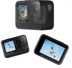 Zestaw osłon Telesin został zaprojektowany na miarę dla kamer GoPro HERO 9, HERO 10, HERO 11 i HERO 12. Wytrzymałe szkło hartowane 2,5D o twardości 9H niezawodnie chroni ekrany i obiektyw przed zarysowaniami, przetarciami i drobnymi uderzeniami, bez wpływu na jakość nagrań.