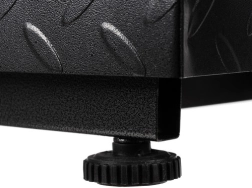 Urządzenie o wadze do 150 kg jest idealne dzięki wbudowanemu akumulatorowi także do użycia w terenie. Duży i łatwy do odczytu wyświetlacz LCD jest widoczny w jasnych i ciemnych pomieszczeniach - jasność cyfr można ustawić! Dzięki temu są one widoczne w każdych warunkach. Waga jest wykonana z falistej stali nierdzewnej. Sama waga ma możliwość szybkiego złożenia - dzięki czemu można ją łatwo transportować. Dodatkowo ma możliwość ustawienia poziomu (nóżki z gwintem).