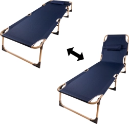 Ciesz się wygodą gdziekolwiek jesteś. To składane łóżko polowe łączy solidną stalową ramę z wytrzymałą tkaniną Oxford (100% poliester), dzięki czemu jest stabilne, przyjemne w dotyku i łatwe w pielęgnacji. Nośność 120 kg oraz 4 regulowane pozycje oparcia pozwalają wybrać idealną pozycję do snu i relaksu. W zestawie znajduje się także poduszka podtrzymująca głowę.