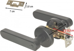 Minimalistyczna czarna klamka z aluminium pasuje do każdego wnętrza. Łatwy montaż na drzwiach lewych i prawych.