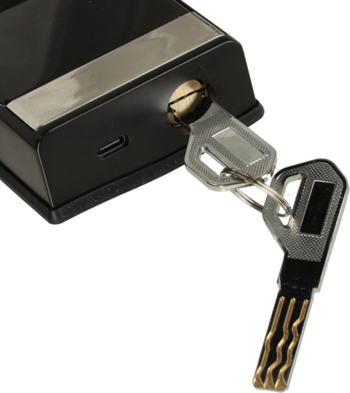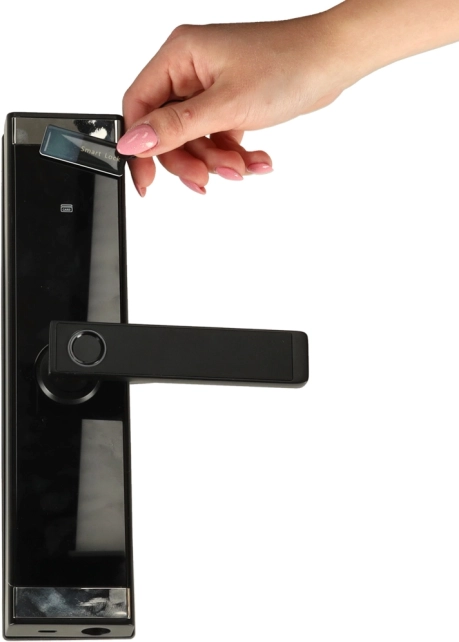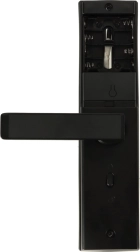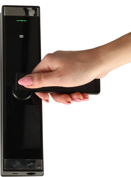 Solidne korpus z aluminium w matowej czerni pasuje do nowoczesnych wnętrz. Zamek nadaje się do drzwi lewych i prawych o grubości 3,5–5 cm i umożliwia szybki montaż. W przypadku rozładowania baterii zawsze można użyć mechanicznego klucza.
