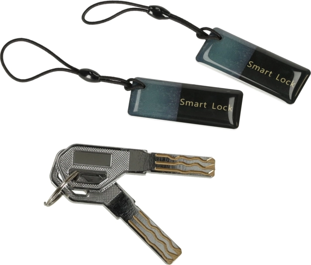 - Klamka zewnętrzna, klamka wewnętrzna, 2× klucz, 2× karta RFID, mechanizm zamka i akcesoria montażowe, instrukcja