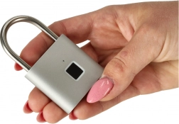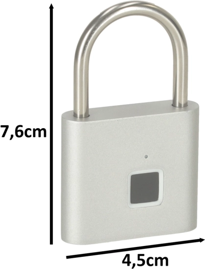 Łatwa kontrola dostępu: zapiszesz do 10 odcisków palców, które można w każdej chwili dodać lub usunąć. Wbudowana bateria 3,7 V wystarcza na kilka miesięcy pracy i ładuje się wygodnie za pomocą dołączonego kabla micro‑USB.