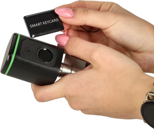 Zintegrowany czytnik linii papilarnych umożliwia błyskawiczne odblokowanie bez szukania kluczy. Zapisz do 100 odcisków dla całej rodziny i gości.