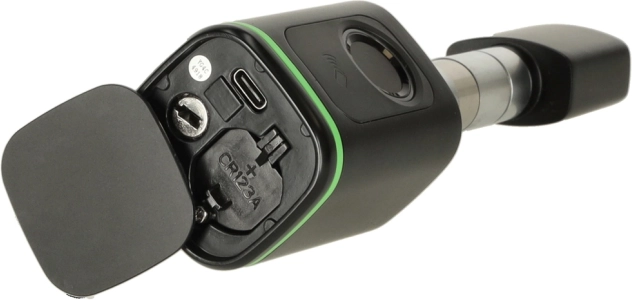 Solidna konstrukcja z aluminium i mosiądzu jest przeznaczona do użytku wewnętrznego (IP50). Dzięki zasilaniu baterią CR123A unikasz kabli – w razie rozładowania wystarczy wymienić baterię. Zapas w postaci klasycznego klucza zapewni wejście także w sytuacji awaryjnej.