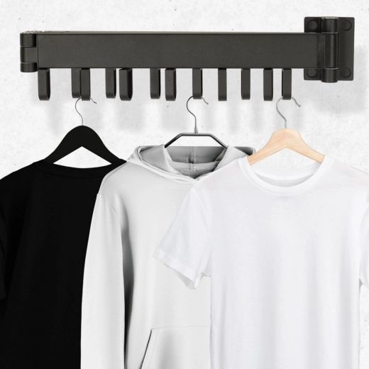 Dwanaście haczyków zapewnia wystarczająco dużo miejsca na koszule, bluzy, płaszcze i akcesoria. Utrzymuj pranie przejrzyście w jednym miejscu.