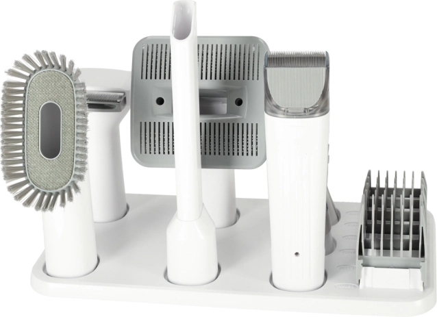 W zestawie znajduje się bezprzewodowa maszynka do strzyżenia z sześcioma nasadkami (3–23 mm) do precyzyjnego modelowania sierści, szczotki przeciwko kołtunieniu oraz narzędzia do pielęgnacji łap i pazurów. Trzy tryby ssania łatwo dopasujesz do wrażliwych zwierząt, a skuteczny filtr pomaga ograniczać kurz i alergeny w domu.