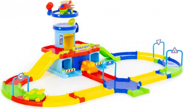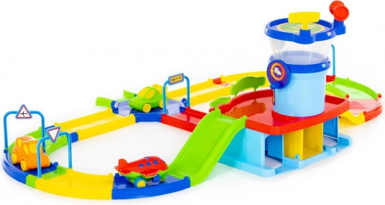 System wielobarwnych tras z mostami, tunelami i połączeniami dla pojazdów oraz samolotów zapewnia płynną jazdę i mnóstwo scenariuszy do zabawy.