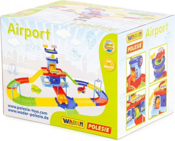 Centralna wieża i budynek lotniska nadają zabawie realistyczny charakter – dzieci mogą kierować ruchem, lądowaniami i odlotami.